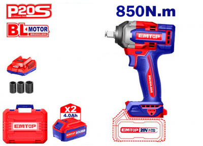 La pistola de impacto inalámbrica Emtop ECIWL2085, es un tipo de herramienta de mano portátil que emplea la energía de una batería recargable para generar torque y aflojar o aproximar pernos y tuercas.