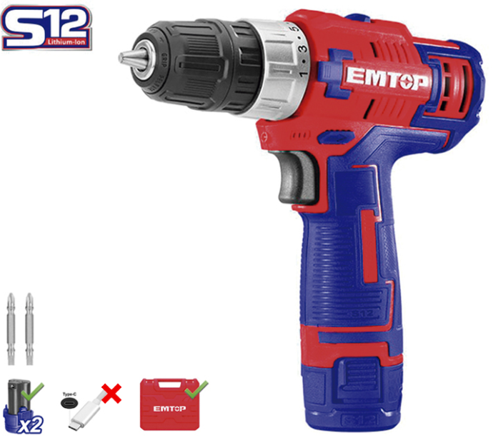 El taladro atornillador Emtop ECDL12620E es una herramienta eléctrica a batería cuyo uso principal, en sus inicios, es realizar perforaciones en cualquier tipo de material. Con los avance de las nuevas tecnologías, el taladro se ha convertido en una herramienta que, acoplando una serie de elementos, te permite lijar, atornillar o afilar.