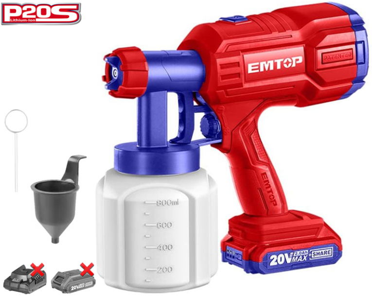Las pistolas de pintura Emtop ELSG2003 son equipos que permiten pulverizar pintura o barniz utilizando presión de aire con el fin de aplicarla o difundirla sobre una superficie.