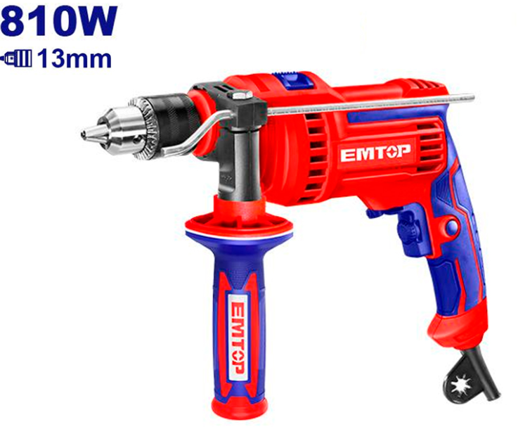 El taladro percutor Emtop EMDL0851, es el tipo de taladro que se caracteriza por disponer de la función de percutor, que consiste en que la broca del taladro no solo rota sobre si misma, sino que además realiza un pequeño movimiento hacia adelante y hacia atrás con el objetivo de romper el material y facilitar el taladrado.