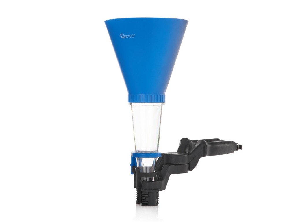 Para un mejor control durante el vertido, la parte inferior del embudo es transparente