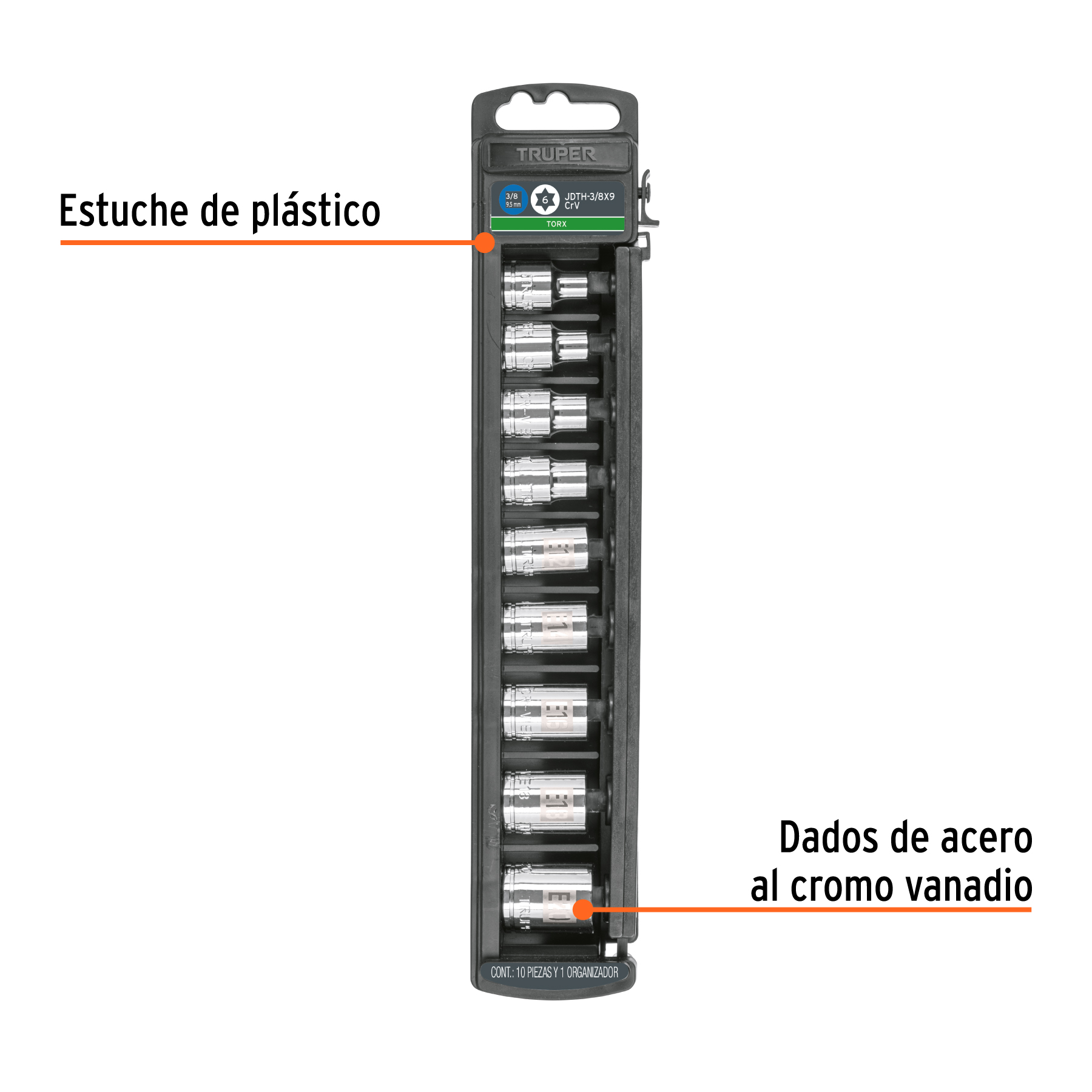 Sistema de sujeción Truper-Drive con puntas convexas que aseguran y aumentan el torque sin dañar tuercas ni cabezas de tornillos
