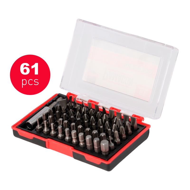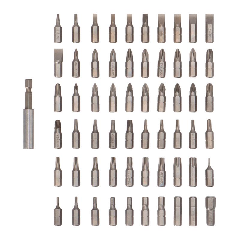 • Juego de 60 puntas, donde encontrarás puntas planas, estrella, torx, hexagonales, etc.