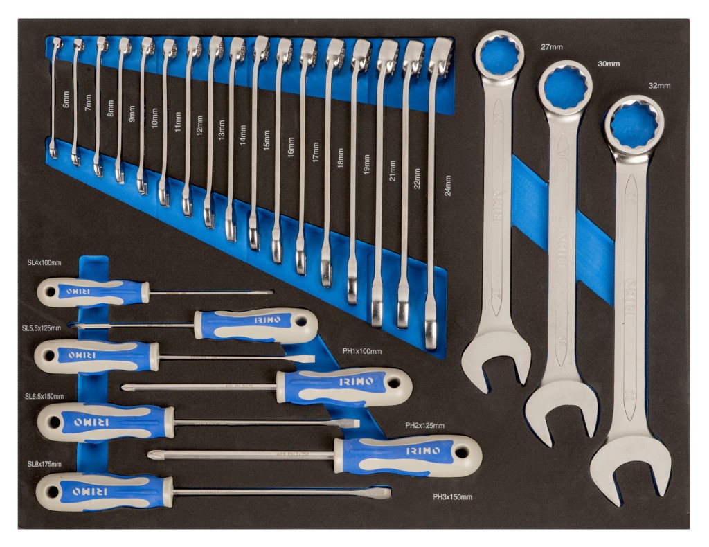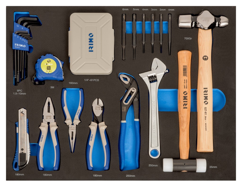 • Destornilladores, herramientas de golpeo y corte, llaves, juego de puntas, alicates y juegos de vasos.