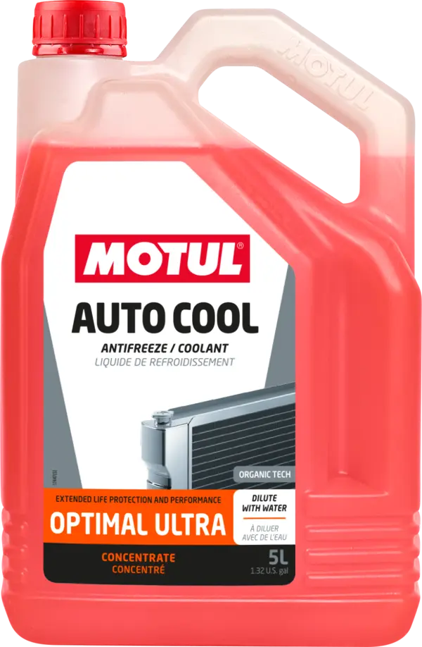MOTUL AUTO COOL OPTIMAL ULTRA es un refrigerante concentrado de larga duración que debe mezclarse con agua desmineralizada, a base de mono etilenglicol, con inhibidores de ácidos orgánicos (OAT) conocida como “Organic Tech”.