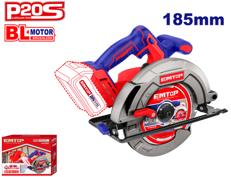 La sierra circular Emtop ELCS1851, es una máquina para aserrar longitudinal o transversalmente madera, metal, plástico u otros materiales. Está dotada de un motor eléctrico que hace girar a gran velocidad una hoja circular.