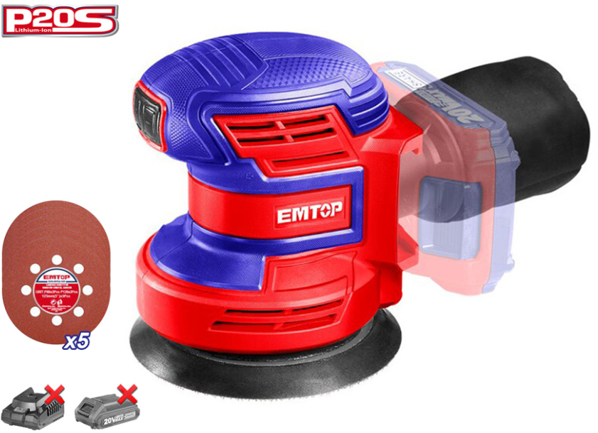 La lijadora orbital Emtop ELPS201250, es una herramienta portátil, con accionamiento eléctrico a batería, que se utiliza para los procesos de desbaste, lijado y pulido, con la que se obtiene una uniformidad en diferentes tipos de superficies, como madera, metal, composites, plástico, etc.