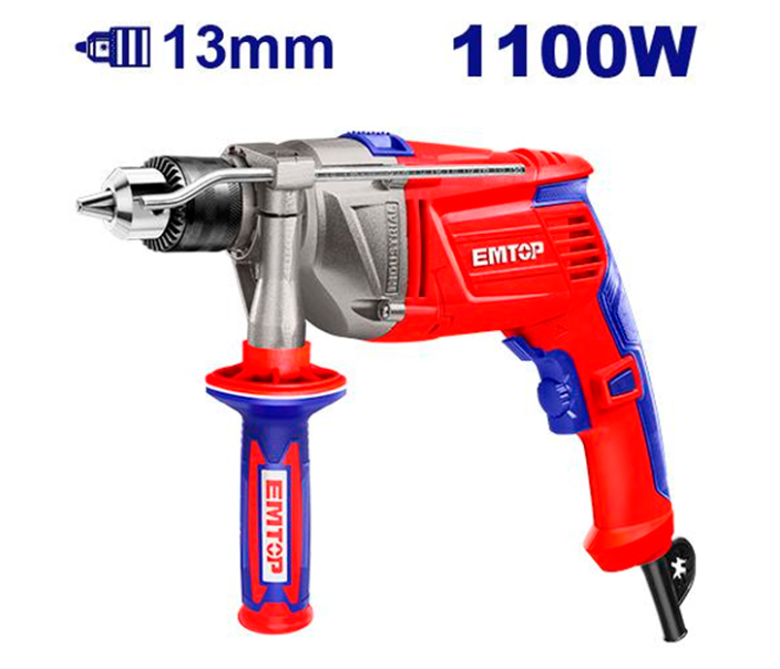El taladro percutor Emtop EMDL1101, es el tipo de taladro que se caracteriza por disponer de la función de percutor, que consiste en que la broca del taladro no solo rota sobre si misma, sino que además realiza un pequeño movimiento hacia adelante y hacia atrás con el objetivo de romper el material y facilitar el taladrado.