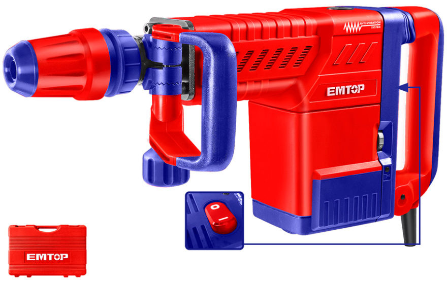 El martillo demoledor Emtop EDBRM1501, es una herramienta eléctrica que se utiliza en la construcción -tanto en proyectos de nueva construcción como en reformas- para perforar o remover muros de concreto o mampostería. Esta herramienta es ideal para abrir rozas, canaletas, excavar zanjas y cimientos en tierra compacta.