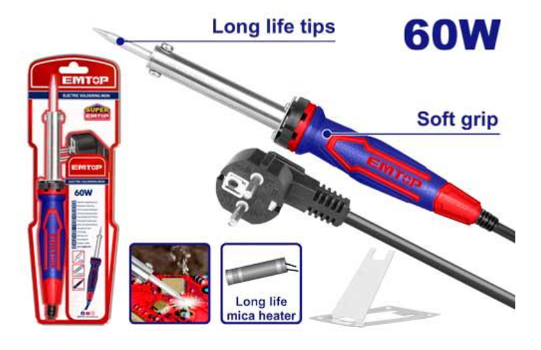 El soldador de estaño Emtop EESL6010, tiene un funcionamiento muy sencillo. Una fuente de energía se encarga de alimentar una resistencia eléctrica que calienta una punta fabricada en metal con un punto de fusión superior al del estaño. Al momento de tocar con ese material, provoca que se derrita de manera automática y se suelde.