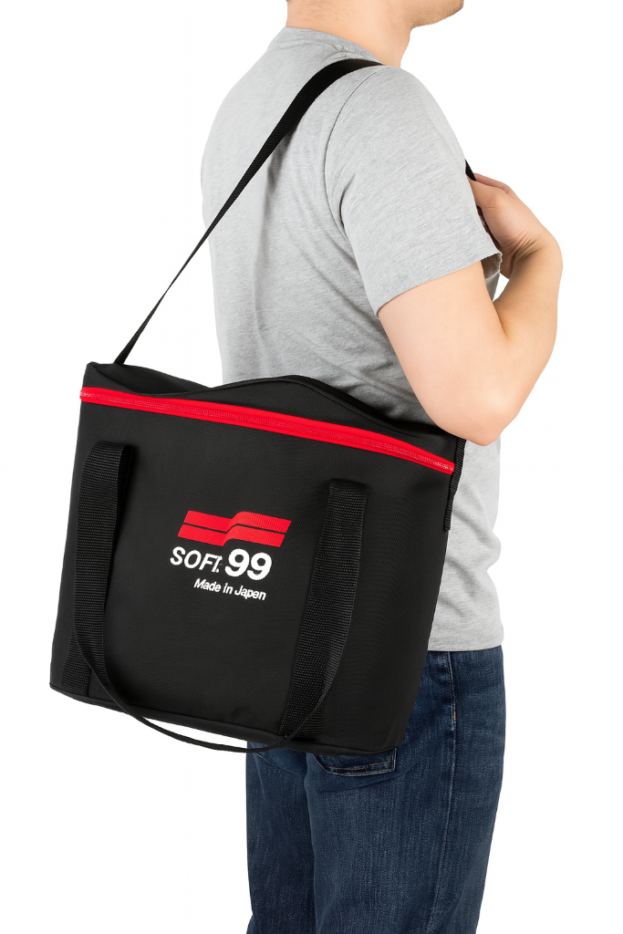 La bolsa está construida con materiales de la más alta calidad. Gracias a las paredes rígidas, la bolsa siempre mantiene su forma. Además, la bolsa detailing bag de Soft99 está equipada con una correa larga de longitud ajustable con cierre de hebilla que le permite llevar la bolsa cómodamente en el hombro. La bolsa tiene una correa de velcro adicional que le permite sujetar la bolsa a la parte inferior del maletero, lo que evita que se deslice mientras conduces. El logotipo de Soft99 está bordado en la parte delantera.