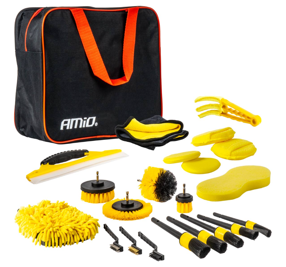 El completo kit de limpieza es ideal tanto para el interior como para el exterior de su vehículo, y le permite limpiar a fondo elementos como puntas de escape, parachoques, pasos de rueda, huecos, ventanas, neumáticos, llantas, tomas de aire, asientos y mucho más.