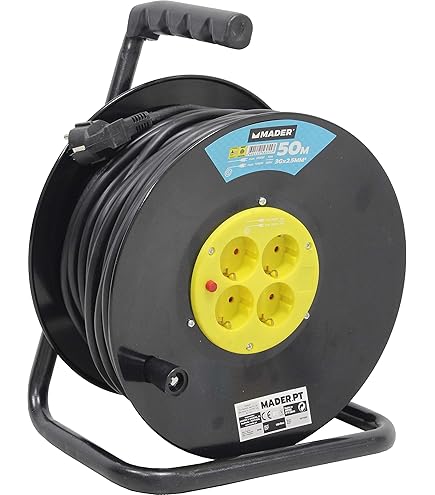 Enrolla cable extensible de 50 metros, con capacidad de 4 tomas. Su cable de 3x2,5 mm está diseñado para soportar las condiciones más exigentes gracias a su certificación IP44, garantizando resistencia y seguridad contra la entrada de cuerpos sólidos y agua.