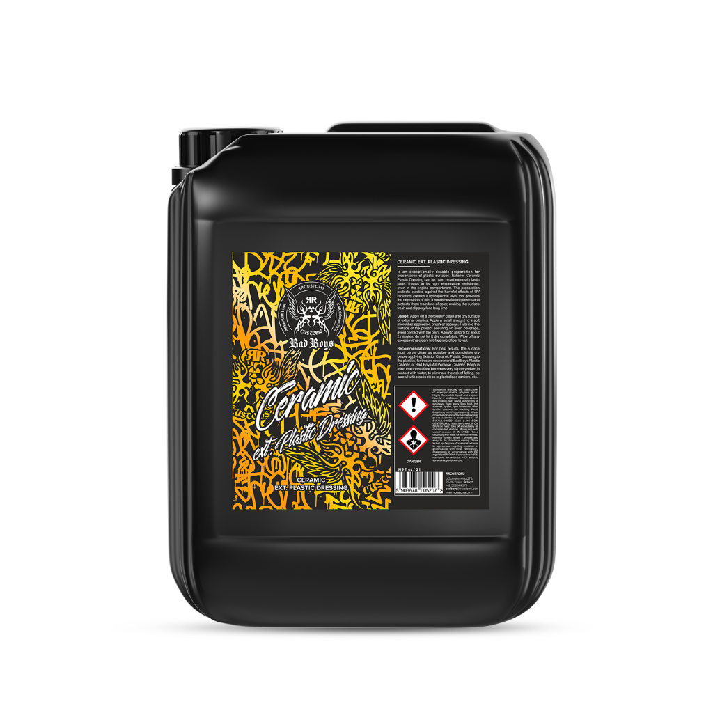 Recomendaciones: Para obtener mejores resultados, la superficie debe estar lo más limpia posible y completamente seca antes de aplicar el Abrillantador Cerámico para Plásticos Exteriores. Para ello, recomendamos el Limpiador de Plásticos Bad Boys o el Limpiador Multiusos Bad Boys. Tenga en cuenta que la superficie se vuelve muy resbaladiza al entrar en contacto con el agua, para eliminar el riesgo de caídas, tenga cuidado con escalones de plástico o porta cargas de plástico, etc.